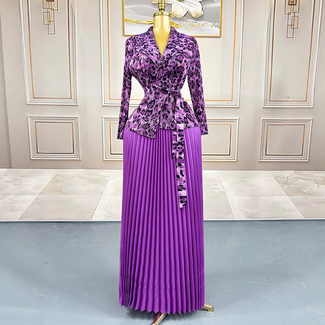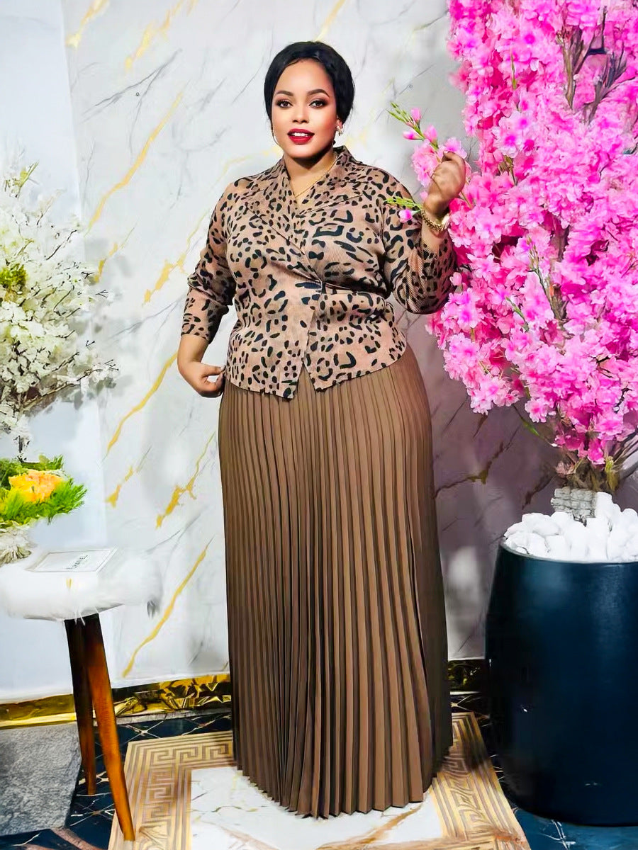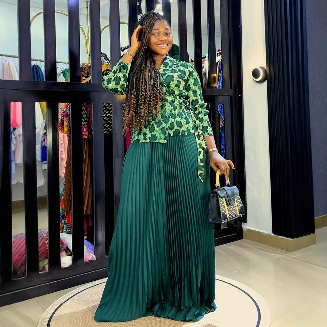 Ensemble pour femmes Imprimé Haut à manches longues Jupe plissée