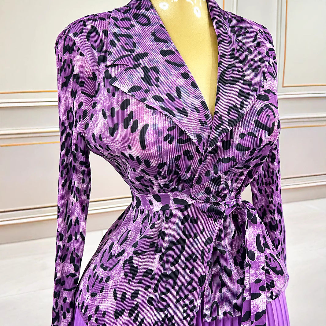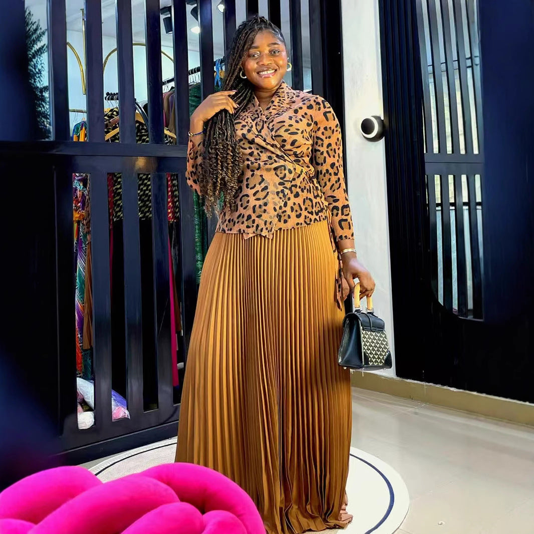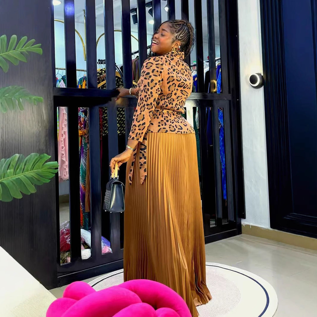 Ensemble pour femmes Imprimé Haut à manches longues Jupe plissée