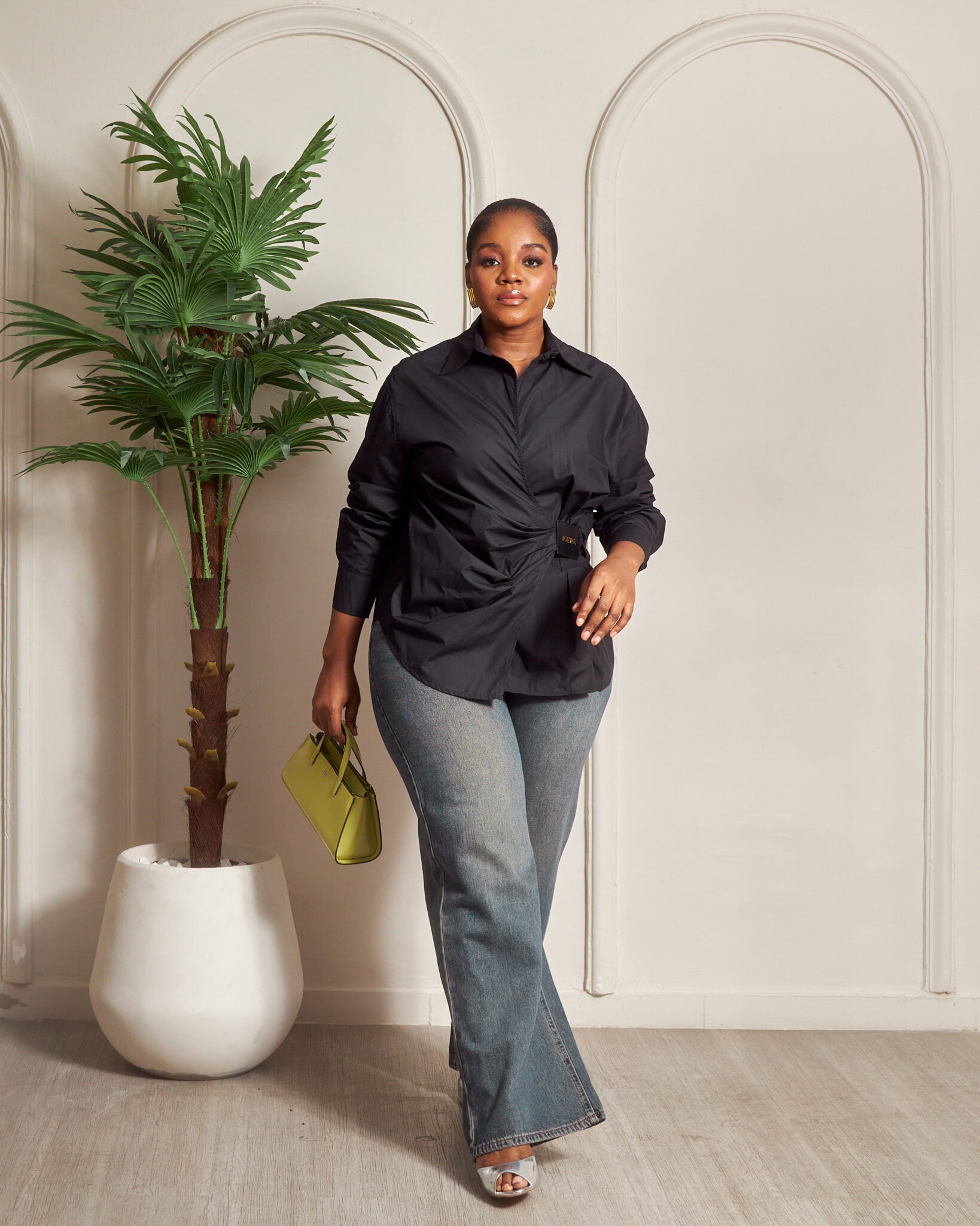 Vos looks avec cette chemise élégante drapée, parfaite pour un style chic et moderne.
